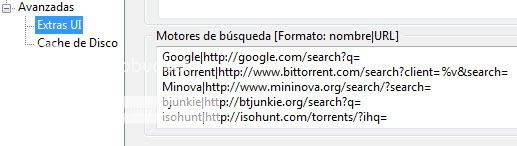 - Ahora, copia el texto de la barra de direcciones de tu navegador y pégalo al final de la lista Motores de búsqueda de utorrent. Borra la parte final, es decir, ubuntu. Quedaría entonces: http://www.mininova.org/search/?search=