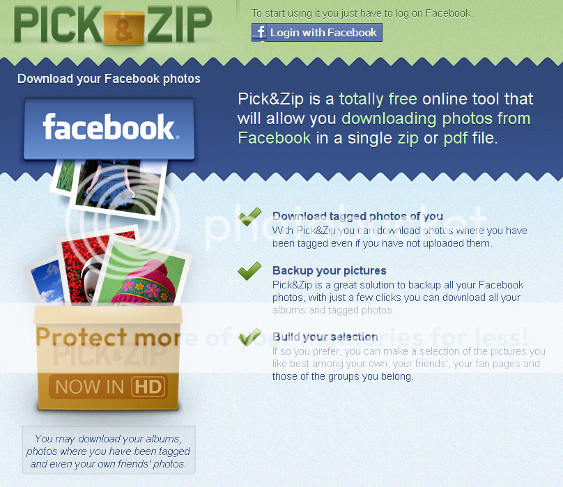 Para los usuarios de facebook esta aplicación Pick&Zip puede ser de gran utilidad.