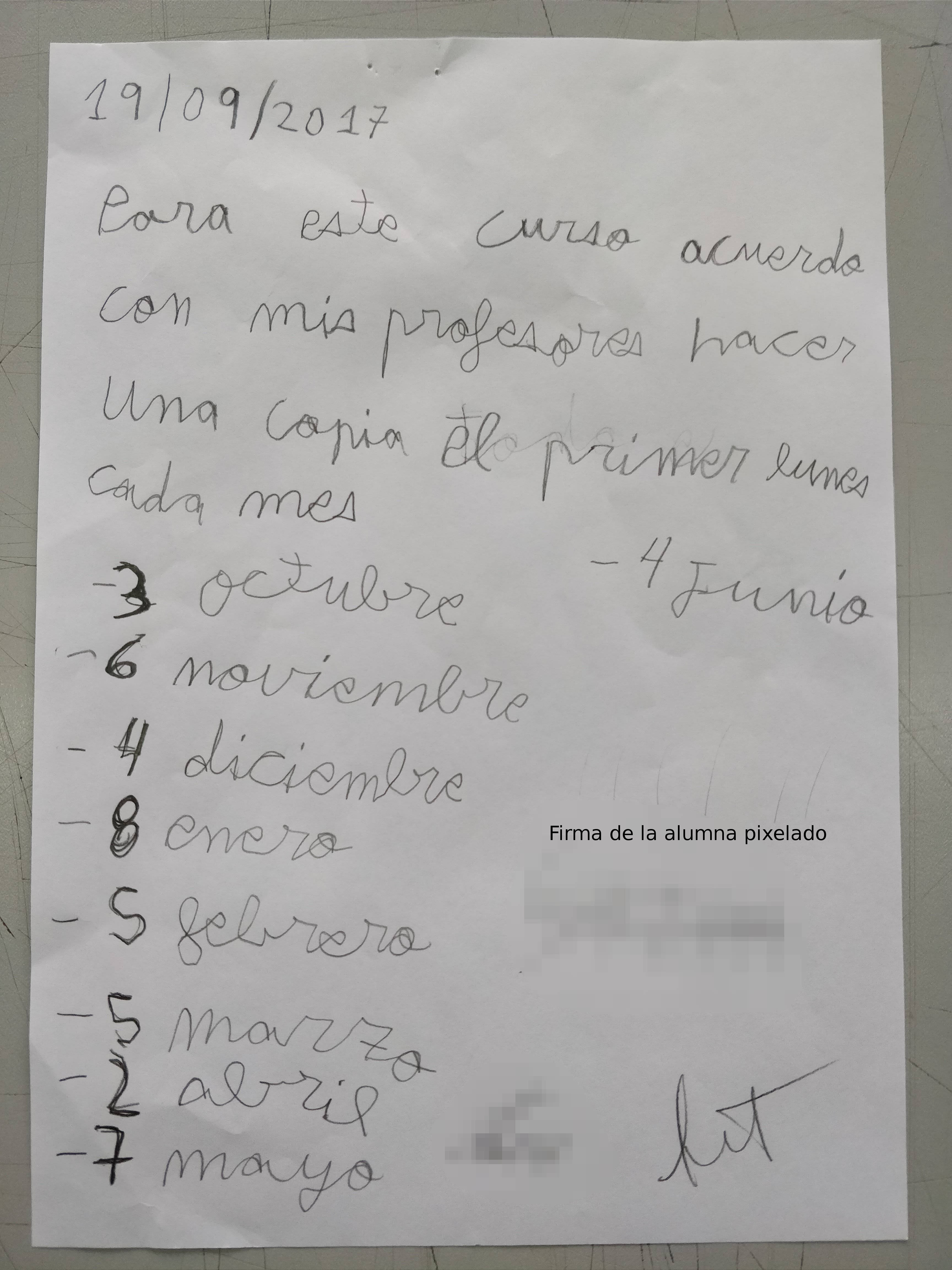 Para ello, acordamos con su familia y con la alumna lo siguiente:
