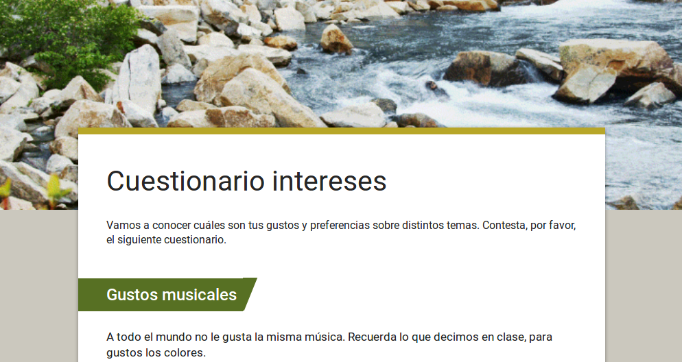 Para el cuestionario de intereses he realizado un formulario en google drive donde la alumna lo rellenaría.